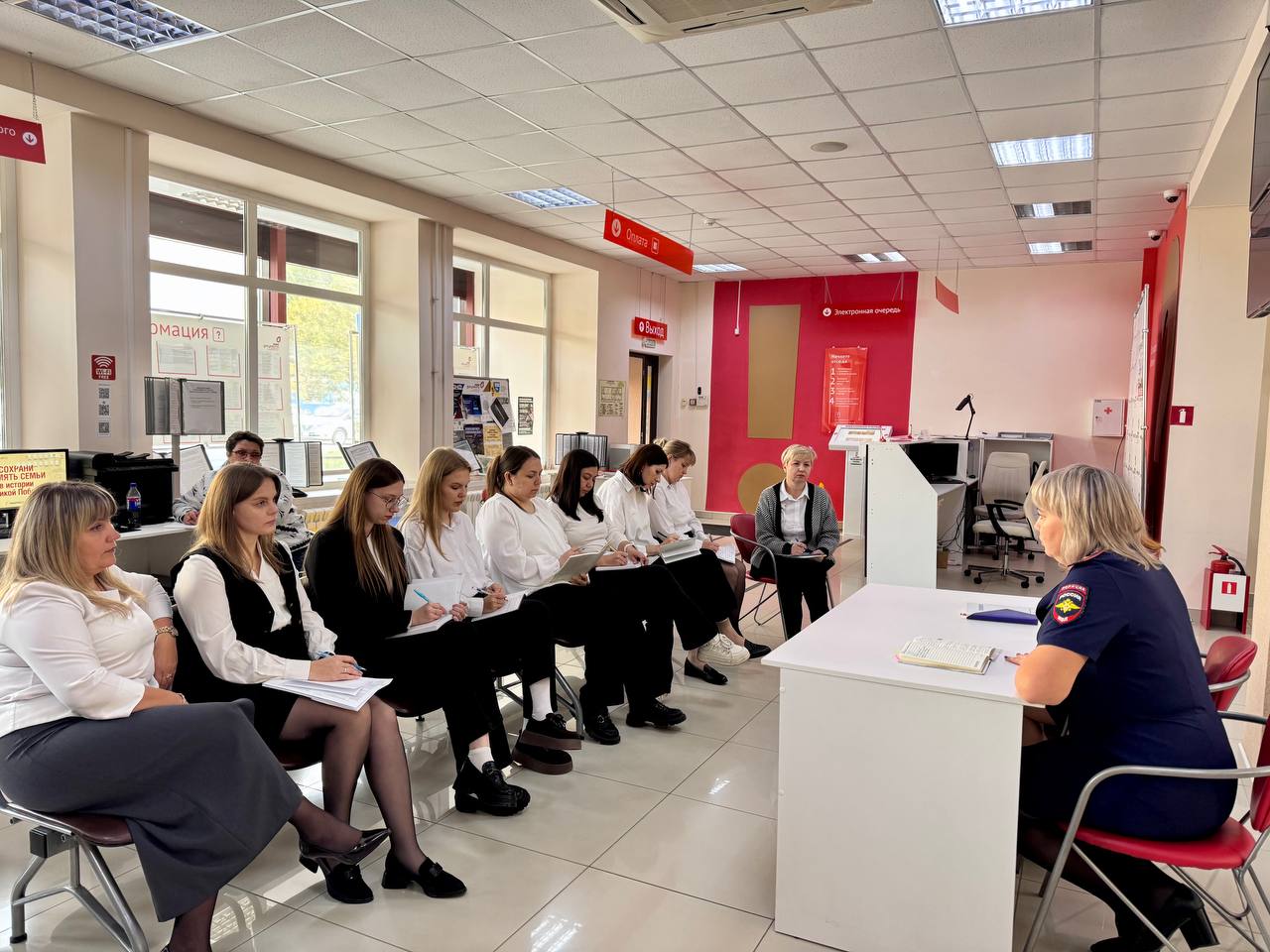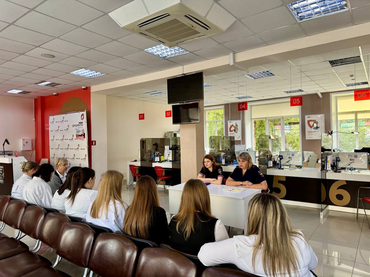с представителями отделения по вопросам миграции Отдела Министерства внутренних дел Российской Федерации «Гайский». В обучающем мероприятии приняли участие начальник отделения по вопросам миграции, майор полиции Киктева Наталья Анатольевна и инспектор, мл. лейтенант Бабкина Анна Константиновна. В рамках обучения специалисты МФЦ получили разъяснения по последним изменениям в законодательстве в части касающейся, обсудили текущие вопросы, возникающие в ходе приема заявителей, рассмотрены особенности постановки на миграционный и регистрационный учет иностранных граждан и граждан Российской Федерации. Подобные мероприятия проходят в Гайском МФЦ регулярно, это необходимый обучающий инструмент, для повышения качества обслуживания заявителей.