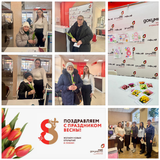 В преддверии праздника весны в Гайском МФЦ специалисты встречали своих заявителей прекрасного пола с традиционными мартовскими тюльпанами и поздравлениями. В зале представлена праздничная выставка детских рисунков, посвященных 8 марта, праздничная атмосфера добра и весеннего настроения. Дорогие заявители! От всей души поздравляем Вас с наступающим Международным женским днём! Этот праздник — прекрасный повод выразить Вам нашу искреннюю благодарность и восхищение. Вы — воплощение красоты, мудрости и нежности. Ваш труд и забота делают наш мир лучше и добрее. Желаем Вам крепкого здоровья, безграничного счастья и исполнения всех желаний. Пусть каждый день приносит радость, любовь и гармонию, а рядом всегда будут близкие люди, готовые поддержать и подарить Вам тепло и заботу. С праздником, дорогие наши!